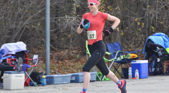 Stone Cat was Nawn’s first race since moving back to Boston, Mass., and it provided her with all of the fall sensory overload she could ask for. From the 31-degree temperature at the start and the frost glistening on the grass, to the golden leaves blanketing the ground and the earthy aroma of the forest, she was ready to savor the day and enjoy her run.