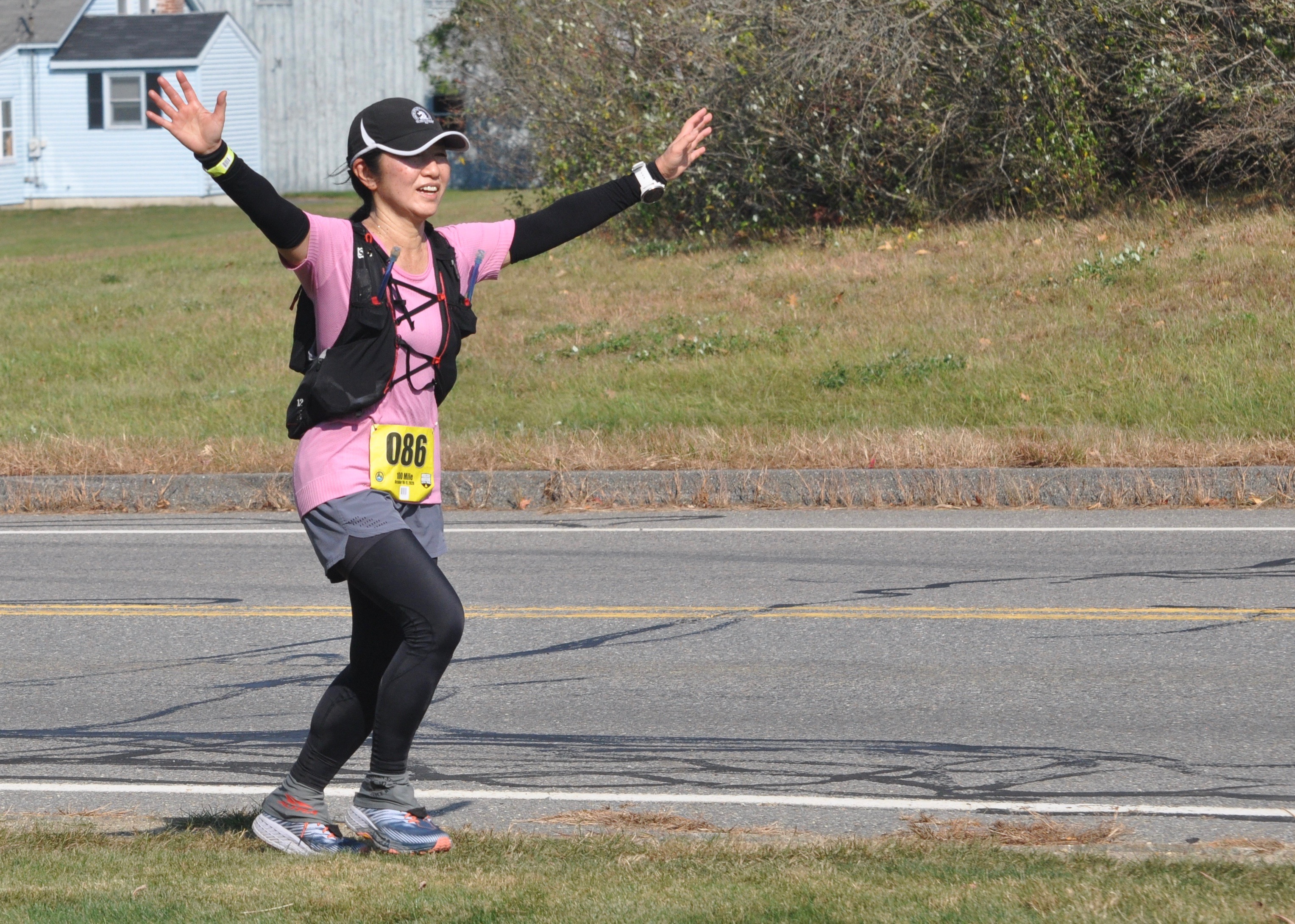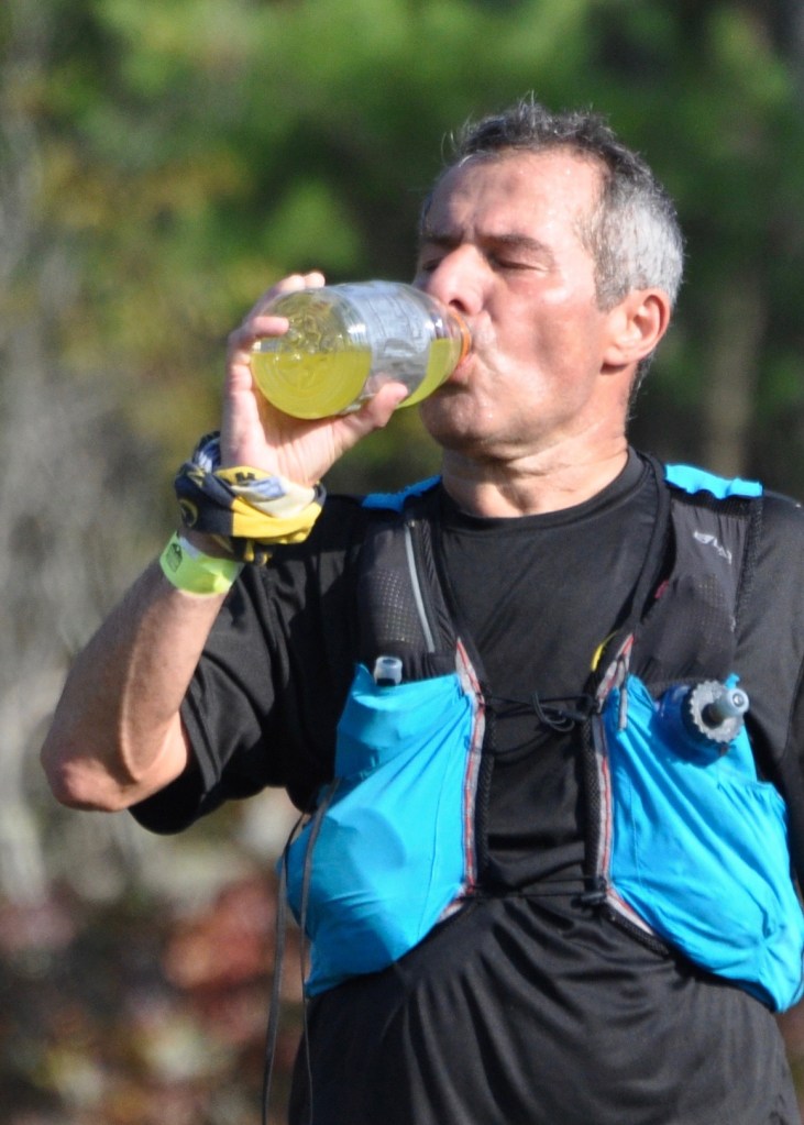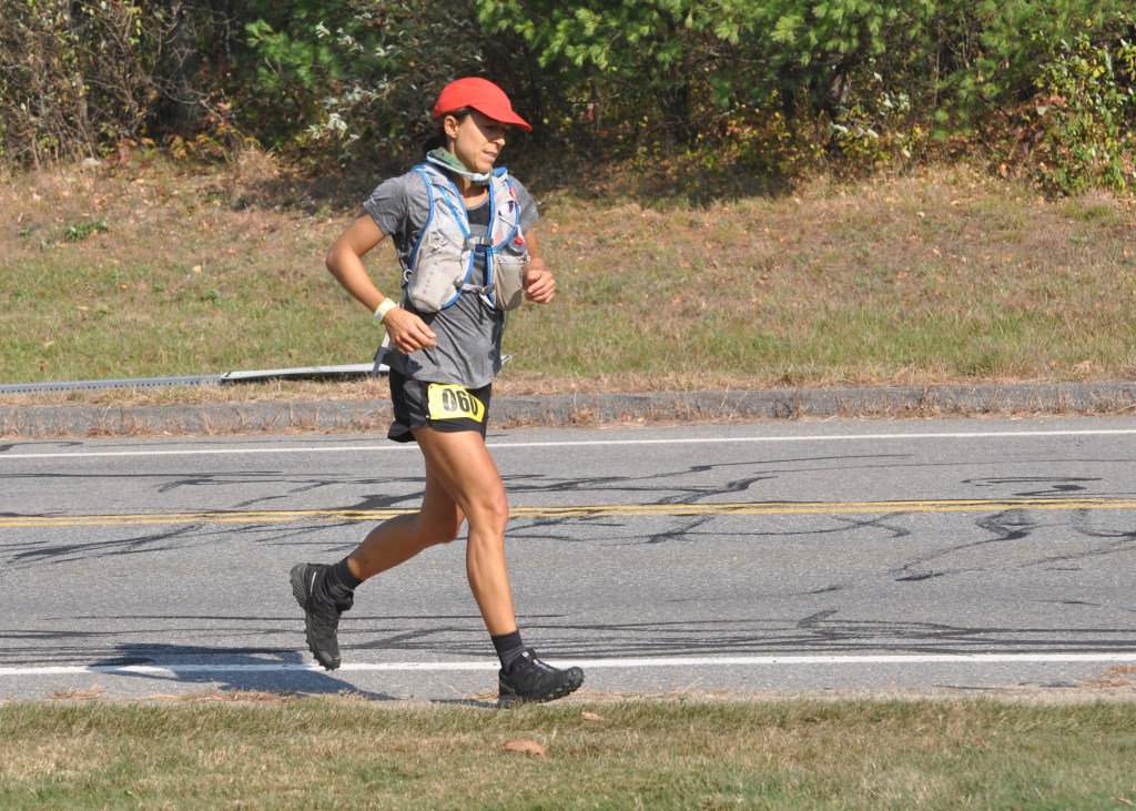 Bob Keating pretends to sprint from the starting line of the 100-mile race at the Midstate Massive Ultra-Trail on Saturday, Oct. 10. 2020. Runners started individually, a minute apart, as a safety precaution due to the COVID-19 pandemic, and Keating was the first starter. Photo by Chris Wristen/MassUltra.Norm Sheppard was fired up to start his 100-mile race at the Midstate Massive Ultra-Trail on Saturday, Oct. 10, 2020. Photo by Chris Wristen/MassUltra.Ilya Bass prepares to begin his 100-mile journey across Massachusetts, beginning at the starting line in New Ipswich, N.H., for the Midstate Massive Ultra-Trail on Durgesh Mankekar of Medford, Mass., cruises through the forest early in the Midstate Massive Ultra-Trail 100-mile race on Saturday, Oct. 10, 2020. Photo by Chris Wristen/MassUltra.Jami Landry of New Paltz, N.Y., was feeling good early in the Midstate Massive Ultra-Trail 100-mile race on Saturday, Oct. 10, 2020. Photo by Chris Wristen/MassUltra.Runners were required to wear face coverings at the starting line, finish line, and at all aid stations of the Midstate Massive Ultra-Trail as a safety precaution due to the COVID-19 pandemic. Photo by Chris Wristen/MassUltra.Kumiko Hart was excited to see her crew 22 miles into the Midstate Massive Ultra-Trail 100-mile race on Saturday, Oct. 10, 2020. Photo by Chris Wristen/MassUltra.Stacia Broderick of Tisbury, Mass., races into the aid station at mile 22 of the Midstate Massive Ultra-Trail 100-mile race on Saturday, Oct. 10, 2020. Photo by Chris Wristen/MassUltra.Dima Feinhaus of Waban, Mass., refuels at mile 22 of the Midstate Massive Ultra-Trail 100-mile race on Saturday, Oct. 10, 2020. Photo by Chris Wristen/MassUltra.Joe Loureiro of Andover, Mass., hikes out of the woods near Wachusett Mountain during the Midstate Massive Ultra-Trail 100-mile race on Saturday, Oct. 10, 2020. Photo by Chris Wristen/MassUltra.Trisha Ignatowski of New York, N.Y., charges up a hill near Wachusett Mountain during the Midstate Massive Ultra-Trail 100-mile race on Saturday, Oct. 10, 2020. Photo by Chris Wristen/MassUltra.Dima Feinhaus of Waban, Mass., and Harry Mattison of Allston, Mass., navigate some rocks 27 miles into the Midstate Massive Ultra-Trail 100-mile race on Saturday, Oct. 10, 2020. Photo by Chris Wristen/MassUltra.