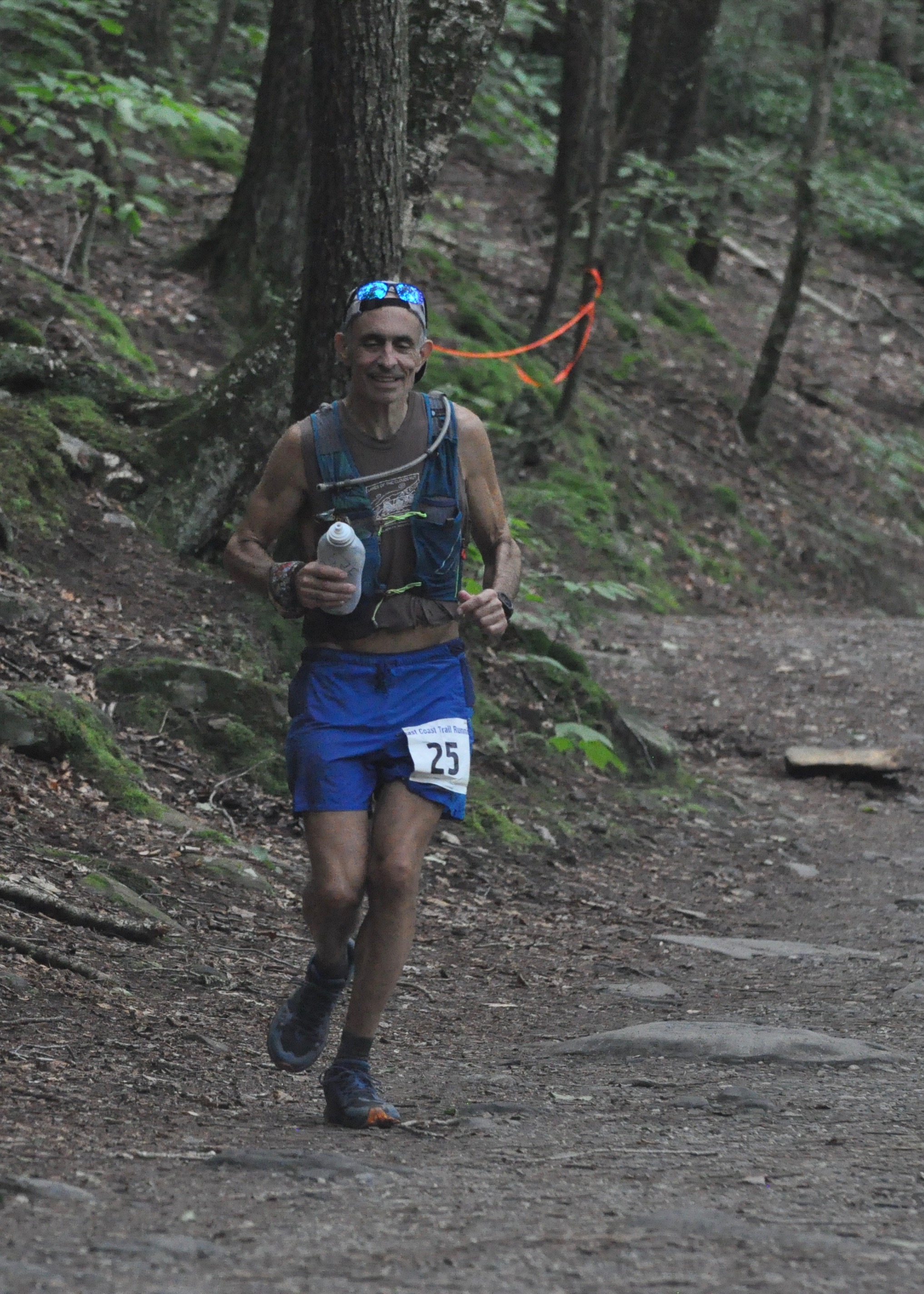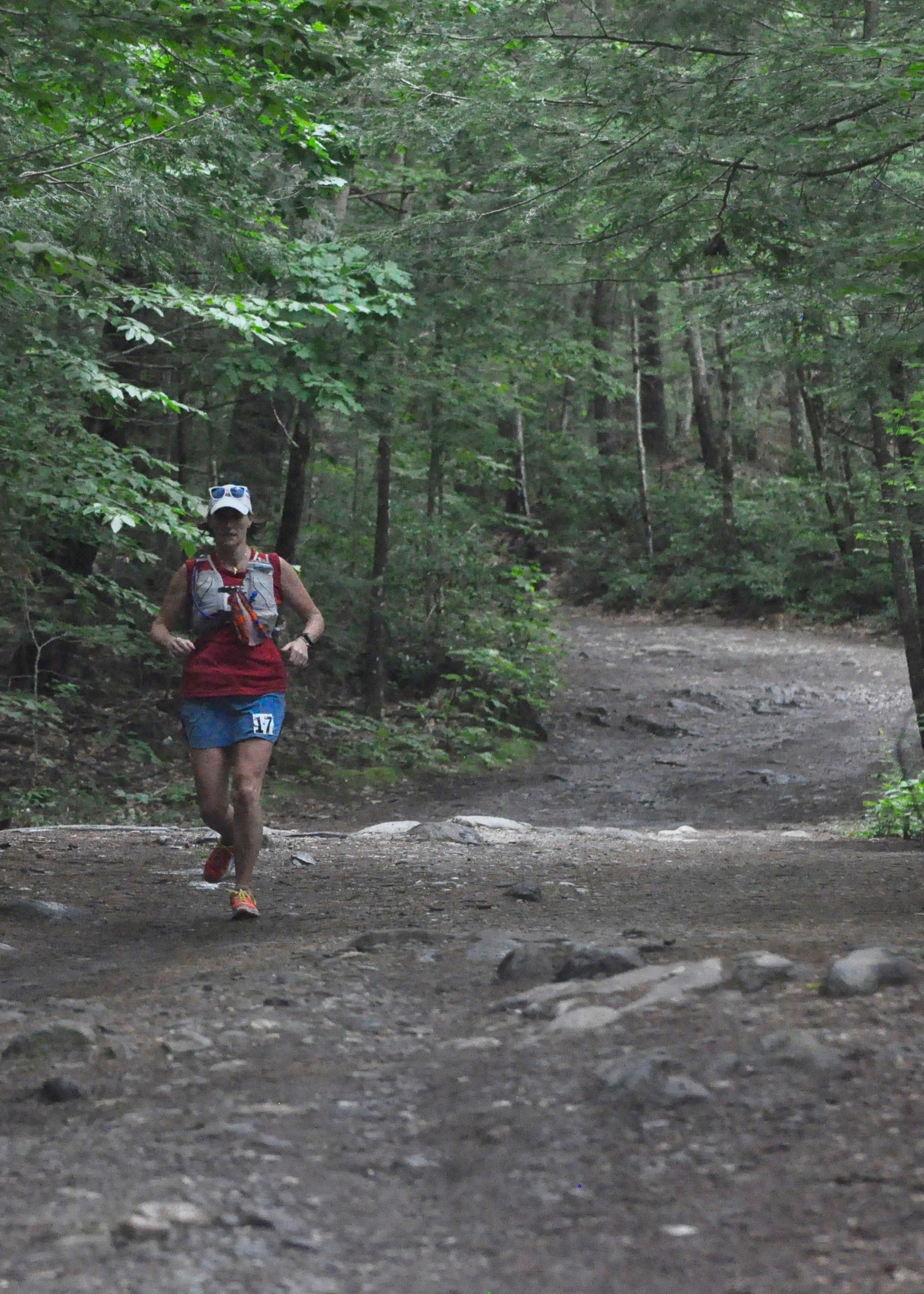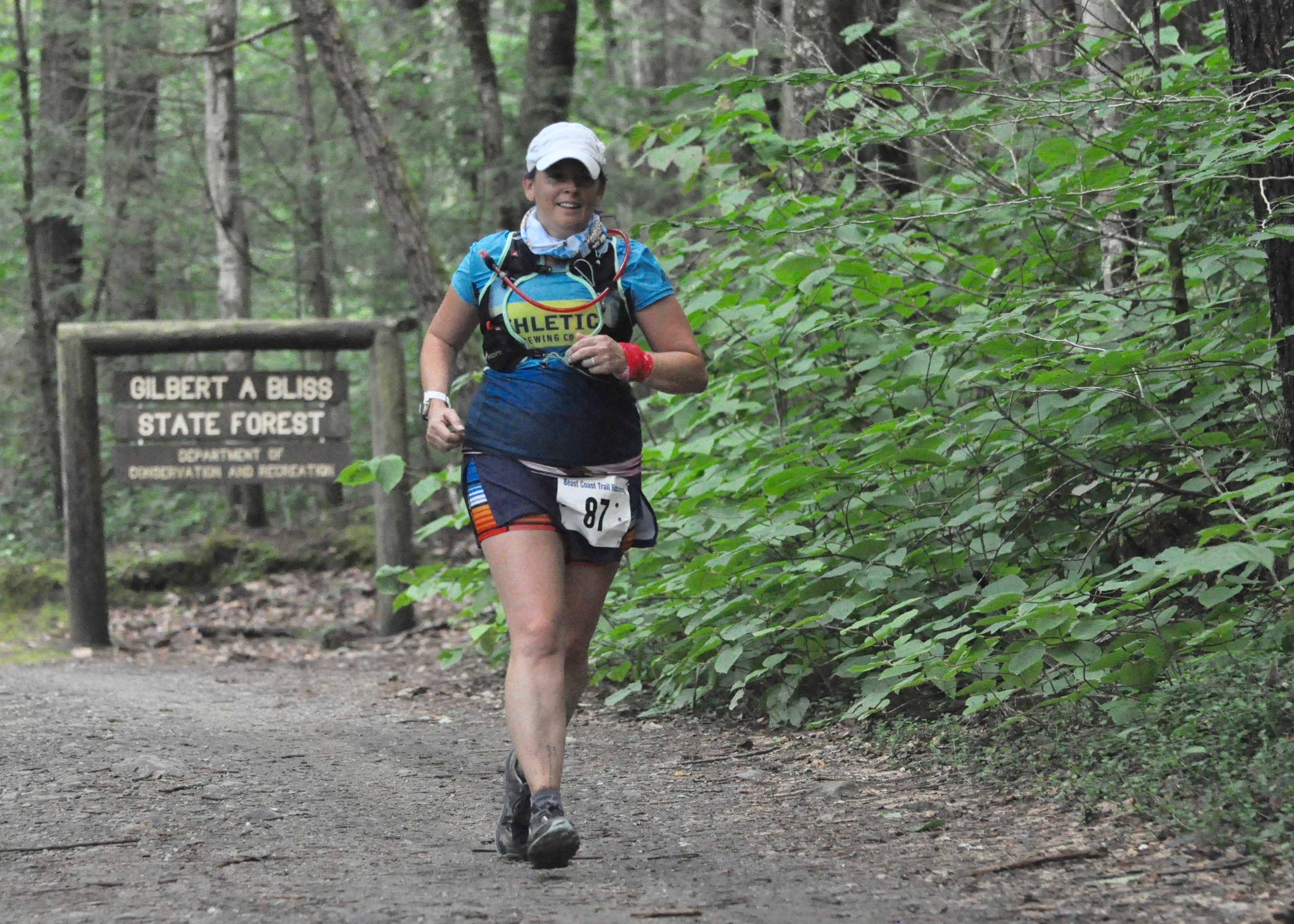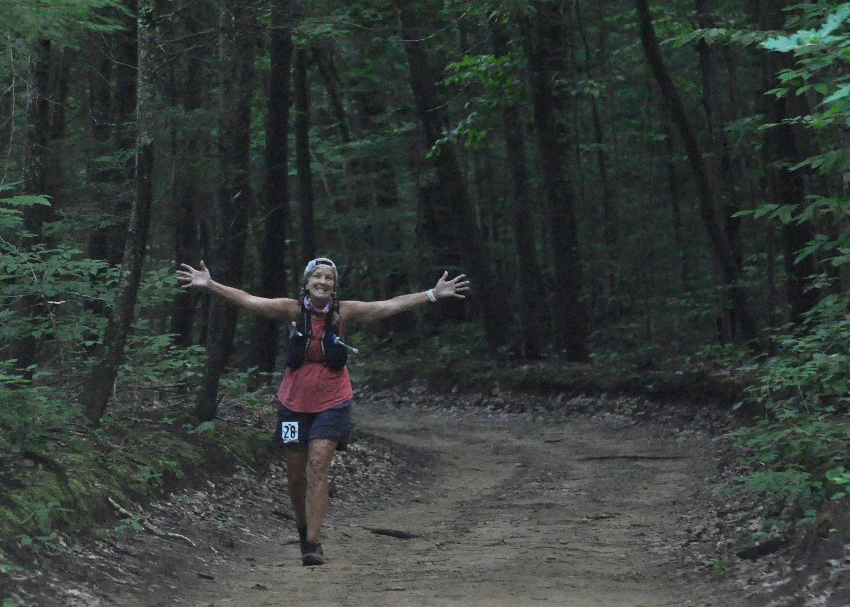 Jack Egan, 62, of Ludlow, Mass., was feeling good as he closed in on the finish line of his first 50K on Saturday, July 10, at the Chesterfield Gorge Ultra. Photo by Chris Wristen/MassUltra.Faith Raymond, 56, of Groton, Conn., cruises through the final mile of her 50K race at the Chesterfield Gorge Ultra. Photo by Chris Wristen/MassUltra.Benjamin Simanski, 37, of Greenfield, Mass., left, and Tony Bonanno, 56, of Ellington, Conn., share some miles together at the Chesterfield Gorge Ultra on Saturday, July 10, 2021. Simanski finished second overall in the 50-mile race while Bonanno placed fourth in the 100K. Photo by Chris Wristen/MassUltra.Maria Chevalier, 46, of Cumberland, R.I., dashes down the hill out of the aid station at the start of her fourth lap at the Chesterfield Gorge Ultra on Saturday, July 10, 2021. Chevalier finished first in the women’s field in the 100K race. Photo by Chris Wristen/MassUltra.Andrew Meisler, 57, of West Hartford, Conn., was feeling good as he worked toward a fifth-place overall finish in the 50-mile race at the Chesterfield Gorge Ultra. Photo by Chris Wristen/MassUltra.Bob Keating, 74, of Nashua, N.H., closes in on the finish line of the 50K race at the Chesterfield Gorge Ultra on Saturday, July 10, 2021. Photo by Chris Wristen/MassUltra.Claire Gadrow, 52, of South Kingstown, R.I., on her way to victory in the 50-mile race at the Chesterfield Gorge Ultra. Photo by Chris Wristen/MassUltra.Viktor Lemgart, 25, of Boston, Mass., cruised to a fifth-place finish in the 100K race at the Chesterfield Gorge Ultra, marking an impressive ultramarathon debut. Photo by Chris Wristen/MassUltra.Victoria Arel, 62, of Portsmouth, N.H., savors her time on the trail during the 50K race at the Chesterfield Gorge Ultra. Photo by Chris Wristen/MassUltra.Race Director Amy Rusiecki, right, high-fives David Johnson (left), 39, of Granby, Mass., after he and Robert Johnson (center), 43, of Belchertown, Mass., as they finish the 50K race at the Chesterfield Gorge Ultra. Photo by Chris Wristen/MassUltra.