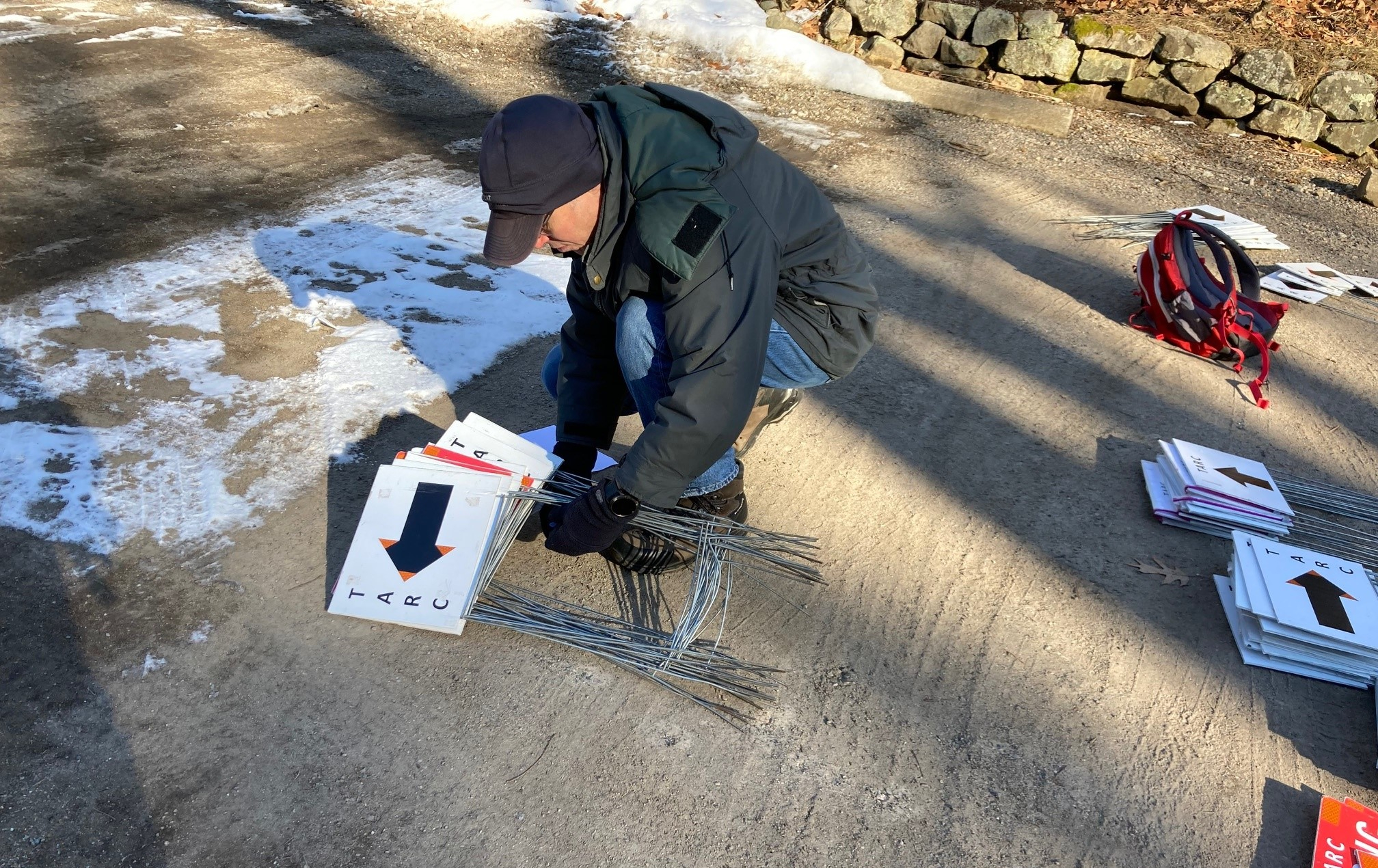 For 3 1/2 hours on Wednesday afternoon, Chris Martin and another volunteer walked the first five miles of the TARCtic Frozen Yeti course at Hale Reservation, one carrying a stack of signs and the other a cordless power drill.