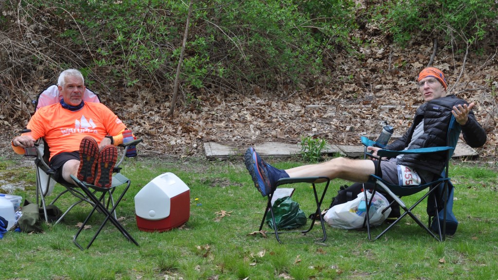 Molly Karp cruises through the course at the Needham Backyard Ultra on Saturday, May 7, 2022. Photo by Chris Wristen/MassUltra.Don Keren catches his breath after completing another loop of the course at the Needham Backyard Ultra on Saturday, May 7, 2022. Photo by Chris Wristen/MassUltra.Ilya Bass cruises through another loop of the course at the Needham Backyard Ultra on Saturday, May 7, 2022. Photo by Chris Wristen/MassUltra.Mike Bates, left, and Ilya Bass, right, relax after completing another loop at the inaugural Needham Backyard Ultra on Saturday, May 7, 2022. Photo by Chris Wristen/MassUltra.Bruce Leung, left, and Mike Bates, right, logged several loops together during the inaugural Needham Backyard Ultra on Saturday, May 7, 2022. Photo by Chris Wristen/MassUltra.Daniel Leonard closes in on the completion of another loop of the course at the Needham Backyard Ultra. Leonard won the inaugural event after 12 hours and 50 miles of racing on Saturday, May 7, 2022. Photo by Chris Wristen/MassUltra.Runners prepare to begin the sixth hour of the Needham Backyard Ultra on Saturday, May 7, 2022. Photo by Chris Wristen/MassUltra.Kiko Bracker, co-Race Director for the Needham Backyard Ultra, shares a laugh with runners as they prepare to begin another loop of the course at Needham Town Forest. Photo by Chris Wristen/MassUltra.Jamie Romaniak, left, and Jessica Pope, logged plenty of miles together during the inaugural Needham Backyard Ultra on Saturday, May 7, 2022. Romaniak raced for nine hours and Pope for eight, with both earning ultramarathon mileage. Photo by Chris Wristen/MassUltra.Molly Karp (seated), Mike Bates (center), and Bruce Leung (right) shared plenty of laughs and miles during the inaugural Needham Backyard Ultra. Photo by Chris Wristen/MassUltra.The official clock that tracked each hour of racing at the inaugural Needham Backyard Ultra. Runners had one hour to complete the 4.17-mile course and return to the starting line to race another loop. Photo by Chris Wristen/MassUltra.