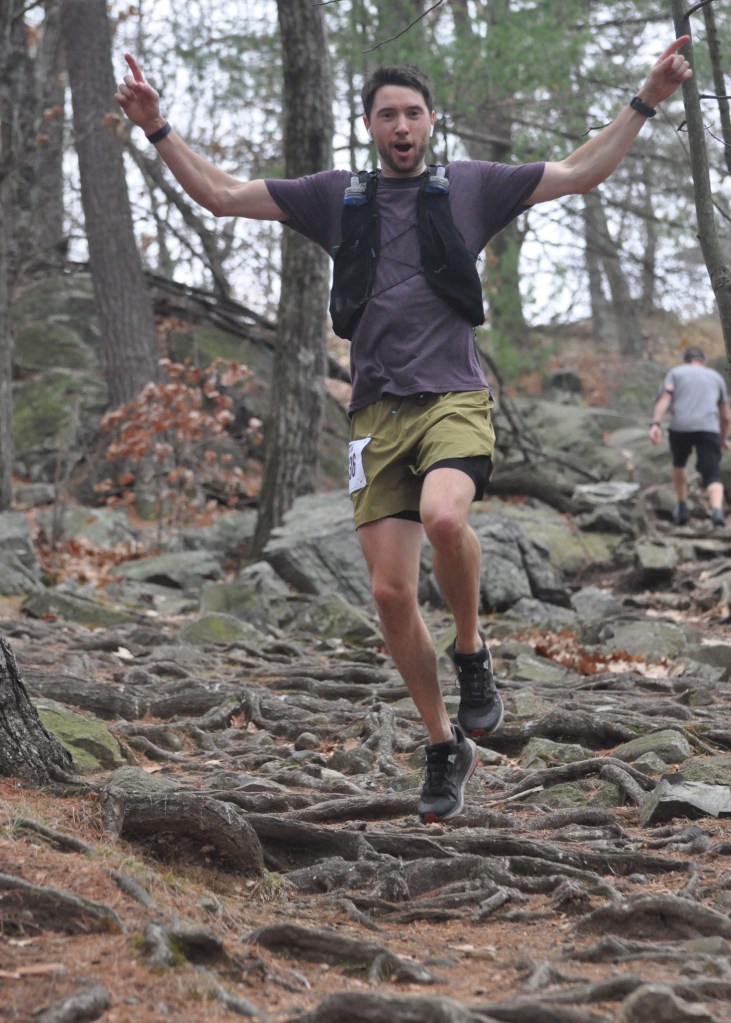 Runners navigate the rocks and roots while climbing up toward Wright’s Tower during the TARC Fells Winter Ultra 40-mile and 32-mile trail races on Saturday, Dec. 3, 2022. Photo by Chris Wristen/MassUltra.Jenny Houlahan of Newburyport, Mass., climbs a rocky ascent at the Middlesex Fells Reservation during the 32-mile race at the TARC Fells Winter Ultra. Photo by Chris Wristen/MassUltra.Shawn Ingram of Boston, Mass., cruises through another loop of the 32-mile race at the TARC Fells Winter Ultra on Saturday, Dec. 3, 2022. Photo by Chris Wristen/MassUltra.Gary Richards of Belmont, Mass., weaves through a mess of rocks and roots on the TARC Fells Winter Ultra course on Saturday, Dec. 3, 2022. Richards was among the finishers of the 32-mile race at the Middlesex Fells Reservation. Photo by Chris Wristen/MassUltra.Rocks and roots couldn’t stop Adam Ribeiro as he raced to victory in the 40-mile race at the TARC Fells Winter Ultra on Saturday, Dec. 3, 2022. Photo by Chris Wristen/MassUltra.Max Dore of Somerville, Mass., soars over a web of roots while coming down from Wright’s Tower during the 40-mile race at the TARC Fells Winter Ultra on Saturday, Dec. 3, 2022. Photo by Chris Wristen/MassUltra.Hank Xi of Malden, Mass., on his way to a 40-mile finish at the 2022 TARC Fells Winter Ultra. Photo by Chris Wristen/MassUltra.Sophia Farnsworth of Stow, Mass., was all business as she cruised through the midpoint aid station at the 2022 TARC Fells Winter Ultra. Farnsworth was the first-place female in the 40-mile race. Photo by Chris Wristen/MassUltra.Galen August of Arlington, Mass., is cheered on by friends as he arrives at an aid station during the 32-mile race at the 2022 TARC Fells Winter Ultra. Photo by Chris Wristen/MassUltra.Runner Nate Combs is greeted by aid station volunteer Rebecca Pellerin at the midpoint aid station on the TARC Fells Winter Ultra course on Saturday, Dec. 3, 2022. Photo by Chris Wristen/MassUltra.Eli Converse of Cambridge, Mass., cruises out of the midpoint aid station at the 2022 TARC Fells Winter Ultra. Converse was the overall runner-up in the 40-mile race. Photo by Chris Wristen/MassUltra.A runner puts on a rain jacket as a light sprinkle turned into a steady rain at the 2022 TARC Fells Winter Ultra. Runners enjoyed temperatures in the upper 50s and dry conditions for most of the day before the rain began to fall. Photo by Chris Wristen/MassUltra.Volunteer Su Mittra fixes a hydration pack for runner Alexandra Raikhlina at the 2022 TARC Fells Winter Ultra. Photo by Chris Wristen/MassUltra.