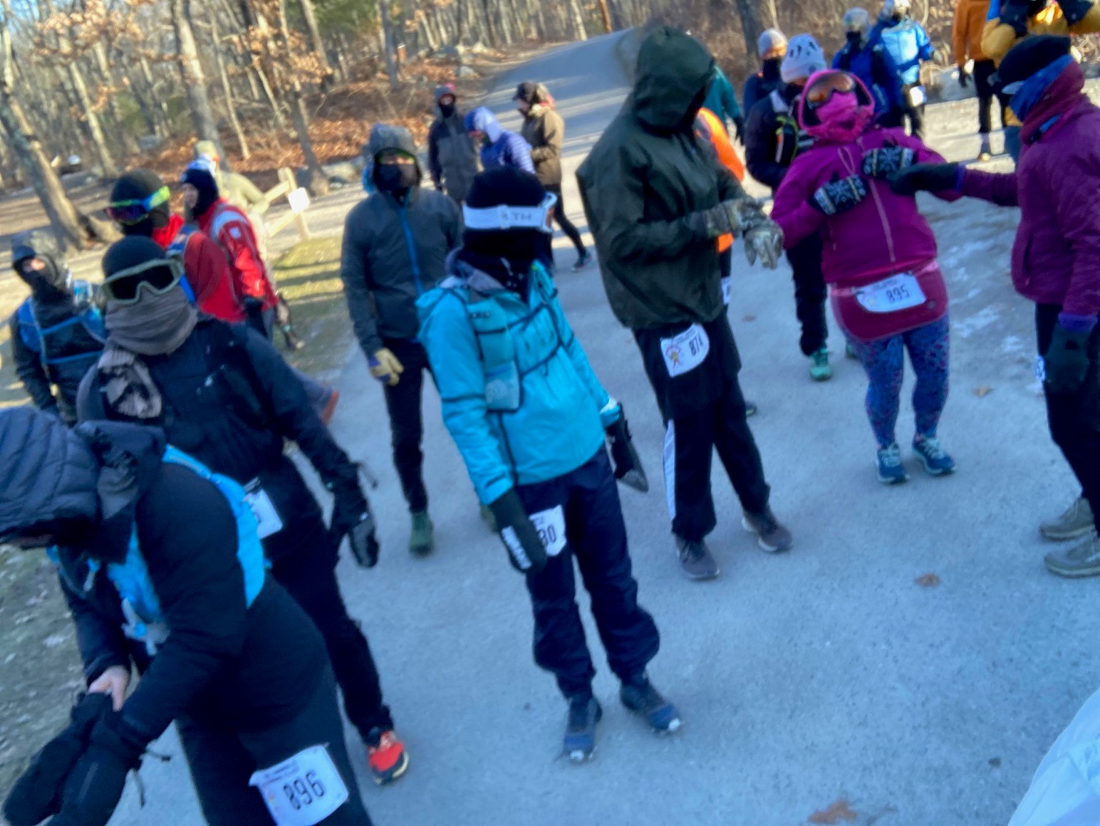 Of the 40 runners who started at the official time – another 10 would arrive later to begin their miles after dealing with frozen pipes at home or letting the temperature rise a few degrees – nearly every face was covered by a buff, ski mask, ski goggles or some combination of those items.