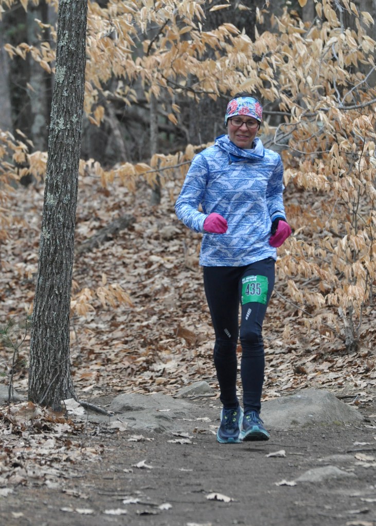 Melissa Dunham of Freeport, Maine, was all smiles as the raced through the woods at the 2023 TARC To Hale and Back 6-Hour Ultra. Photo by Chris Wristen/MassUltra.Nate Combs of Andover, Mass., races through the woods at Hale Reservation during the To Hale and Back 6-Hour Ultra on Saturday, March 25, 2023. Photo by Chris Wristen/MassUltra.A blanket of golden leaves surrounds Jaime Wiley of Claremont, N.H., while racing on the trails of Hale Reservation at the 2023 TARC To Hale and Back 6-Hour Ultra. Photo by Chris Wristen/MassUltra.Reed Woodbury of Milford, Mass., navigates a rocky uphill on the trails of Hale Reservation at the To Hale and Back 6-Hour Ultra on Saturday, March 25, 2023. Photo by Chris Wristen/MassUltra.Adam Ribeiro, 31, of Lowell, Mass., hammered out 10 laps for 35 miles and finished second overall at the 2023 TARC To Hale and Back 6-Hour Ultra. Photo by Chris Wristen/MassUltra.Chris Feder takes a break from running to hug her son at the aid station during the 2023 TARC To Hale and Back 6-Hour Ultra. Photo by Chris Wristen/MassUltra.Bill Howard ascends the final rocky climb to the finish of the loop at the 2023 TARC To Hale and Back 6-Hour Ultra. Photo by Chris Wristen/MassUltra.A volunteer refills the bottle of a runner during the 2023 TARC To Hale and Back 6-Hour Ultra. Photo by Chris Wristen/MassUltra.Ben Schersten of Beverly, Mass., takes in some liquid calories before taking on another trip through the 3.5-mile loop at the TARC To Hale and Back 6-Hour Ultra. Schersten finished fifth overall with nine laps for 31.5 miles. Photo by Chris Wristen/MassUltra.Carolyn Stocker and Maria Chevalier navigate the trail during the 2023 TARC To Hale and Back 6-Hour Ultra. Both Stocker and Chevalier completed 28 miles at the race. Photo by Chris Wristen/MassUltra.Jason Bacon of Pawtucket, R.I., navigates the trail along the shore of Noannet Pond at Hale Reservation during the 2023 TARC To Hale and Back 6-Hour Ultra. Photo by Chris Wristen/MassUltra.Runners gather by the fire to warm up at the 2023 TARC To Hale and Back 6-Hour Ultra. Photo by Chris Wristen/MassUltra.Jade Zhang of Brighton, Mass., was feeling good on her way to 31.5 miles and a first-place finish in the women’s field at the 2023 TARC To Hale and Back 6-Hour Ultra. Zhang also tied for the second-best mileage performance by a woman in course history. Photo by Chris Wristen/MassUltra.David Catarius of Shrewsbury, Mass., cruised to 31.5 miles and a ninth-place overall finish at the 2023 TARC To Hale and Back 6-Hour Ultra. Photo by Chris Wristen/MassUltra.Brian Okum of Belmont, Mass., put up 31.5 miles and finished seventh overall in his TARC debut at the 2023 TARC To Hale and Back 6-Hour Ultra at Hale Reservation. Photo by Chris Wristen/MassUltra.Gwenyth Taradash, 22, of Dartmouth, Mass., was on cruise control early at the TARC To Hale and Back 6-Hour Ultra. Taradash completed nine laps for 31.5 miles, finishing second in the women’s field and tying for the second-best women’s performance in event history. Photo by Chris Wristen/MassUltra.Daniel Grip of Wendell, Mass., flew through the course at Hale Reservation and earned the overall win at the 2023 TARC To Hale and Back 6-Hour Ultra with 38.5 miles while tying the men’s course record. Photo by Chris Wristen/MassUltra.