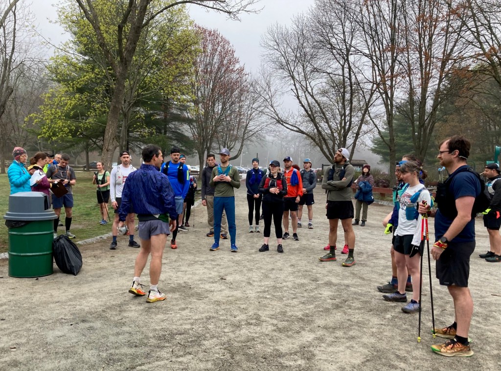Most of this crowd hadn’t been here before; the same was the case for the smaller group of runners who started two hours earlier. It was Sunday, April 16, and this was the start of the 27th annual Trail Animals “Don’t Run Boston” 50K at the Blue Hills Reservation.