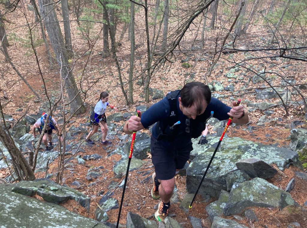 Veterans and Newcomers: While DRB welcomed a large number of newcomers to this year’s event, including 21 first-time finishers, the Trail Animals’ original event saw several familiar faces complete the course once again. Eleven of the finishers had successfully completed DRB previously, some of them many times. Race founder Howie Breinan earned his record 19th DRB finish. Other long-time DRB legends who added to their tallies were Rich Collins, 66, of Cape Neddick, Maine, who earned his 12th finish; Norm Sheppard, 65, of Newton, Mass., who finished for the 11th time; and Bob Najar, 66, of Portsmouth, N.H., who earned his 10th finish. Dietmar Bago, 55, of Andover, Mass., inched closer to the rare double-digit finishing status by notching his eighth DRB finish. Additionally, Chris Wristen, 42, of Norwood, Mass., finished for the fifth time; Alexandra Brinkert, 36, of Norwood, Mass., and Marcy Beard, 53, of Livingston, Texas, each finished for the fourth time; Julie Huber, 60, of Newton, Mass., became a three-time finisher; and Lisa Rising, 32, and Emily Andrews, 32, of Boston, Mass., became two-time finishers.