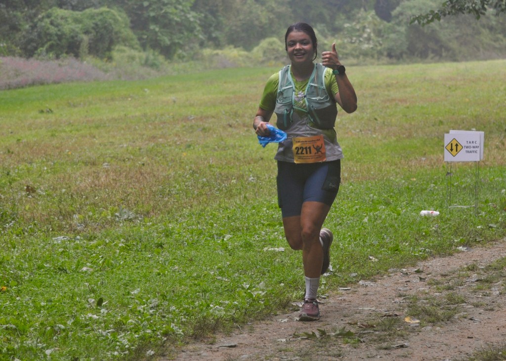 Jill Lizotte of Coventry, R.I., Ed Cullen of Rumford, R.I., (middle), and Quinn Brussel of San Luis Obispo, Calif., circle the cornfield near the end of the TARC Fall Classic course on Saturday, Sept. 9, 2023. Lizotte and Cullen ran the 10K race while Brussel won the 50K race. Photo by Chris Wristen/MassUltra.Robert Awkward of Boston, Mass., was exuberant during the early miles of his 50K race at the 2023 TARC Fall Classic. Awkward earned his first ultramarathon finish at the event on Saturday, Sept. 9, 2023. Photo by Chris Wristen/MassUltra.Juliana Carvajal Castrillon of Needham, Mass., was in good spirits during her 50K race at the 2023 TARC Fall Classic. Castrillon earned her first ultramarathon finish at the race on Saturday, Sept. 9, 2023. Photo by Chris Wristen/MassUltra.Josh Kramer of Irondequoit, N.Y., navigates three roots near the top of a climb during his 20-mile race at the TARC Fall Classic on Saturday, Sept. 9, 2023. Photo by Chris Wristen/MassUltra.Katie Guerce of Leominster, Mass., dashes down one of the rolling hills in the woods at Great Brook Farm State Park at the 2023 TARC Fall Classic. Guerce finished the 50K race. Photo by Chris Wristen/MassUltra.Srihari Ganesh of Novi, Mich., cruises through the TARC Fall Classic course on his way to finishing the 10K race on Saturday, Sept. 9, 2023. Photo by Chris Wristen/MassUltra.Friends Michael Pulli (left) of Medford, Mass., and Will Swenson (right) of Andover, Mass., caught up while sharing some early miles in the 50K race at the 2023 TARC Fall Classic. Photo by Chris Wristen/MassUltra.Megan Serpa of Stoneham, Mass., earned a second-place finish in the women’s race at the 2023 TARC Fall Classic. Photo by Chris Wristen/MassUltra.Sporting the T-shirt from his 100-mile finish at the 2016 TARC 100, Michael Latham of Brockton, Mass., cruises to his third finish of the TARC Fall Classic 50-miler on Saturday, Sept. 9, 2023. Latham placed seventh overall this year. Photo by Chris Wristen/MassUltra.Jade Bihua Zhang of Brighton, Mass., was feeling good early in her 50-mile race at the TARC Fall Classic. Zhang finished fourth overall and first-place female at the race on Saturday, Sept. 9, 2023. Photo by Chris Wristen/MassUltra.Maryna Yanovich of Cranston, R.I., closes out her win in the women’s half-marathon race at the 2023 TARC Fall Classic. Photo by Chris Wristen/MassUltra.Nikolas Emack Bazelais (2228) of Cambridge, Mass., and Nathan Keliher (1913) of Chelmsford, Mass., lead a group of runners through the woods near the end of the loop of the TARC Fall Classic course on Saturday, Sept. 9, 2023. Photo by Chris Wristen/MassUltra.Alice Bock of Chelmsford, Mass., has her eyes on the finish line as she closes out the 1/2-mile youth fun run at the 2023 TARC Fall Classic. Photo by Chris Wristen/MassUltra.TARC Fall Classic Race Director Patrick Caron hands a finisher’s award to one of the runners in the 1/2-mile youth fun run. Photo by Chris Wristen/MassUltra.Finisher’s awards for the 1/2-mile youth fun run at the 2023 TARC Fall Classic. Photo by Chris Wristen/MassUltra.
