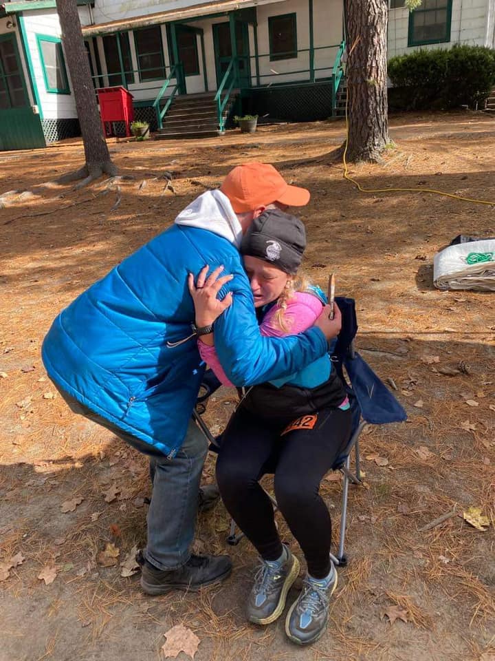 “There were some onions being cut nearby when she came in,” said Race Director Rob Fiero, smiling as he teared up recalling Rizzo’s finish and the moments that followed, which included a warm hug between he and Rizzo as she sat in a chair by the finish line. “When Jenn came in, that was … she was very emotional, and I think that carried over to everybody else. I had just a wonderful hug with her. She was talking a little bit about all the things she’s overcome, and I was just so happy for her. I’m happy for everybody who comes in at whatever distance they do, but that was a really special finish.”