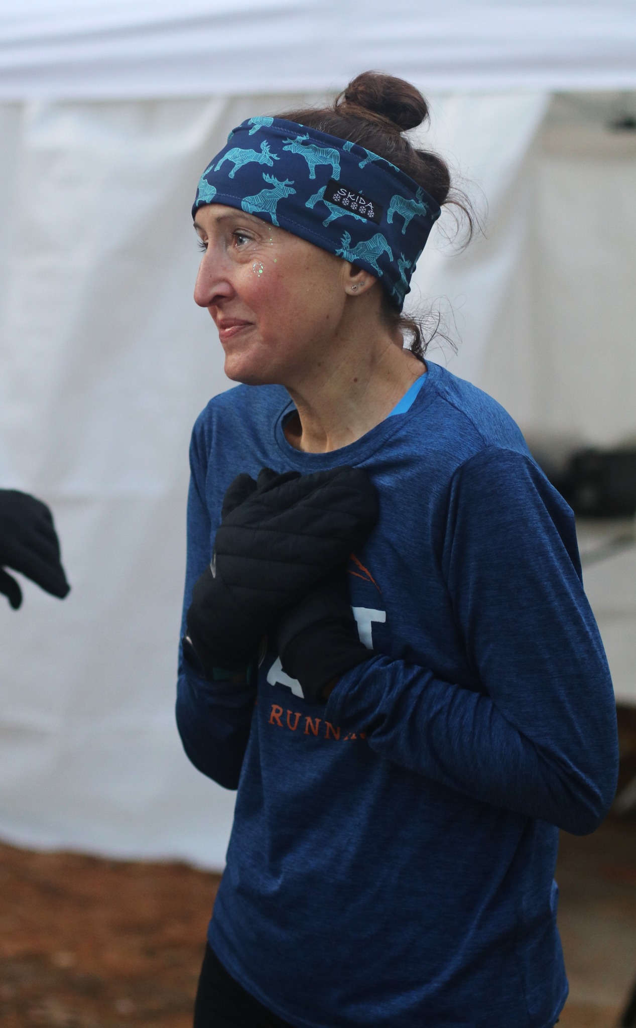 On race day she stepped to the starting line with confidence and hope, armed with wisdom gained from her prior efforts. Her nutrition was dialed in. She packed extra layers and hand warmers for the overnight chill, a critical lesson learned from Chesterfield that would pay dividends in the 40-degree nighttime temperatures. She even had a mantra that she repeated to herself throughout the race: “It’s my turn.”