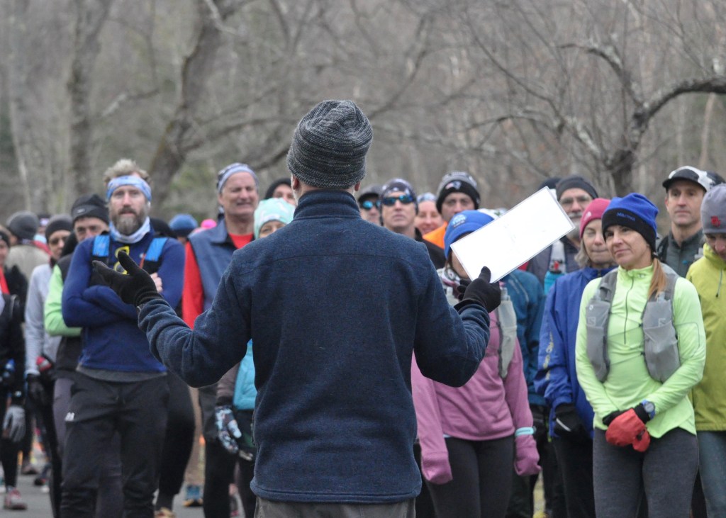 “When you need to turn, you’ll be told,” Martell instructed the runners, holding up a sign with an arrow as an example of the course marking. “There’s some mud, there’s some ice, some of everything. It’s that time of year.”