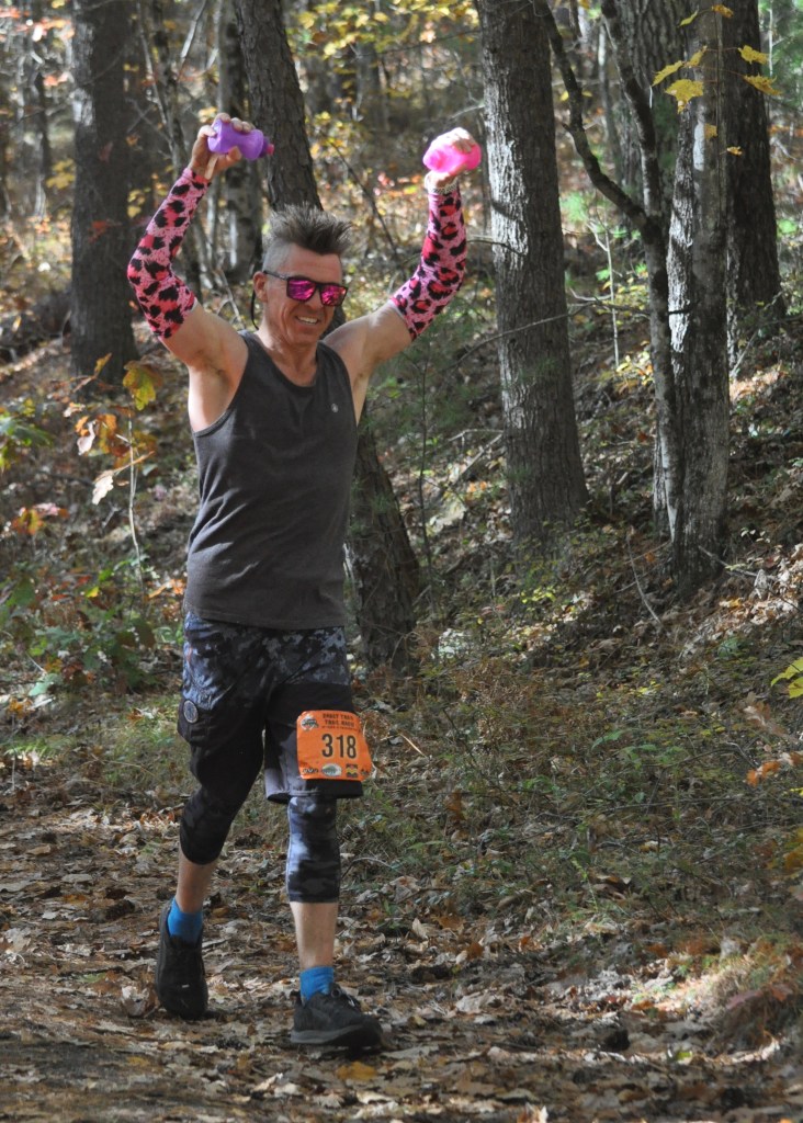 Jeremy Reger was pumped up to be nearing the 30-mile mark of his run at Ghost Train 2024. Photo by Chris Wristen/MassUltra.