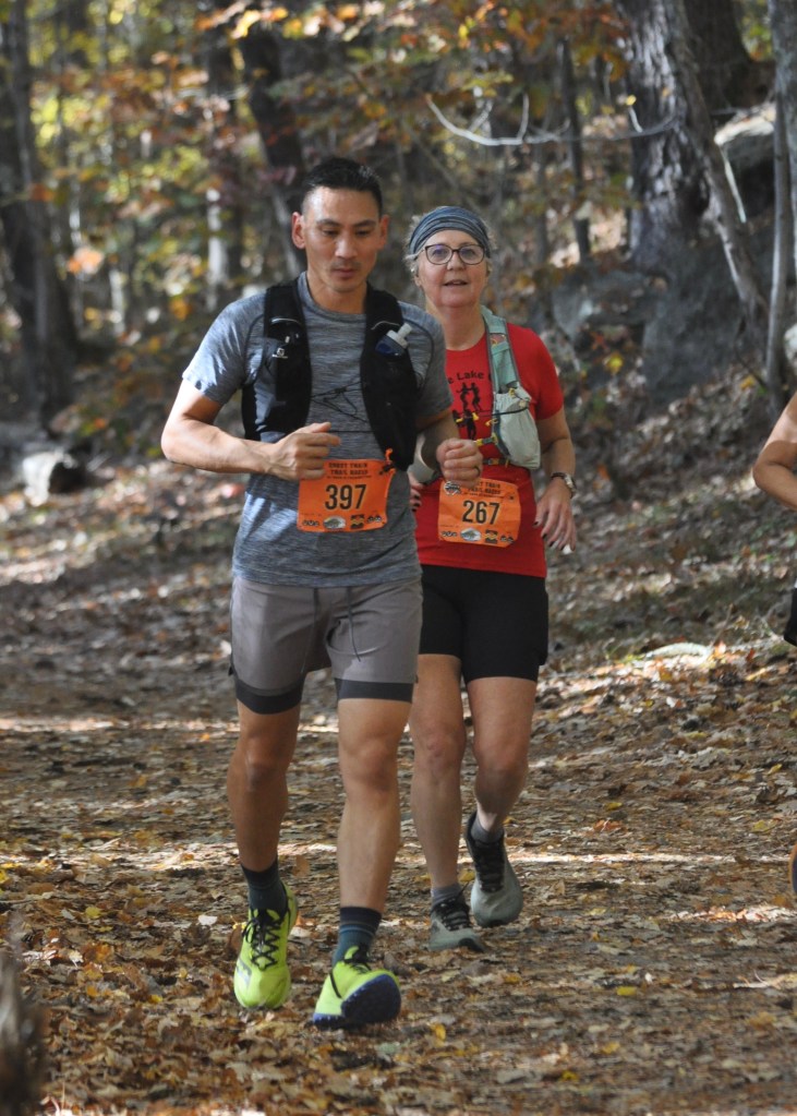 Timothy Yan on his way to an ultramarathon finish at Ghost Train 2024. Photo by Chris Wristen/MassUltra.