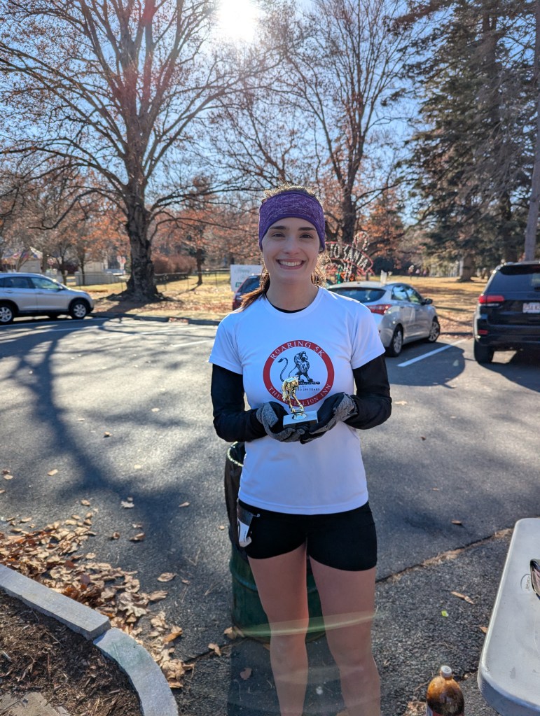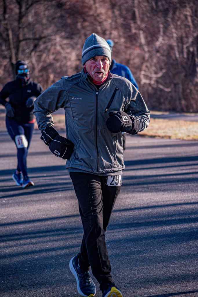 Additionally, several runners got to share miles with Longmeadow native and race namesake Seth Roberts. The 73-year-old’s ultrarunning resume is impressive, including finishes at the 1995 Western States 100-Mile Endurance Run, the Old Dominion 100 and Angeles Crest 100 in 1996, the Leadville Trail 100 in 1997, the Wasatch Front 100 in 1998, Arkansas Traveller 100 in 2001, Rocky Raccoon 100 in 2002, the historic JFK 50-miler in 2004, and five sub-24-hour finishes of the Vermont 100 (1993, 1998, 2001, 2002, 2011). Still, one of his greatest running feats was creating an event that still brings the community together so many years later. Roberts created Seth’s Fat Ass 50K with his son, Frank, in 2010 to give ultrarunners in the Springfield area an opportunity to gather for some miles in mid-December. Frank named the race after his father, and Roberts returns each year to run a few loops and reconnect with friends. Roberts completed five loops and 15.5 miles at this year’s run.