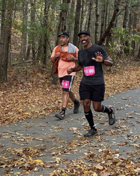“I felt like my job was to keep him motivated, keep the conversation going, and keep him putting one foot in front of the other,” Searcy said. “I think the motivation was that, as you know, there are not many people of color who are out there doing this sport, and so here I have my best friend who’s doing it with me. I thought about how inspirational that will be not only from his perspective or my perspective, but from his kids’ perspective. To think that my dad has run 50K – there’s not many people who can say that.”