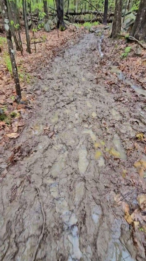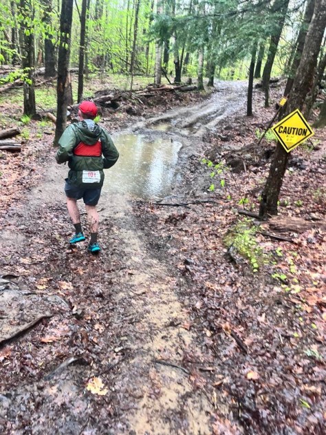 Runners had to complete four out-and-backs on the course, which was a mix of singletrack and all-terrain vehicle trails with plenty of ups and downs to navigate and rocks and roots to dodge. Due to the early heavy rainfall before and during the event’s first eight hours, runners didn’t have the benefit of getting at least one lap out of the way on drier, more manageable terrain. Shoe-sucking mud was everywhere. Pools of water were everywhere. Carnage was everywhere.