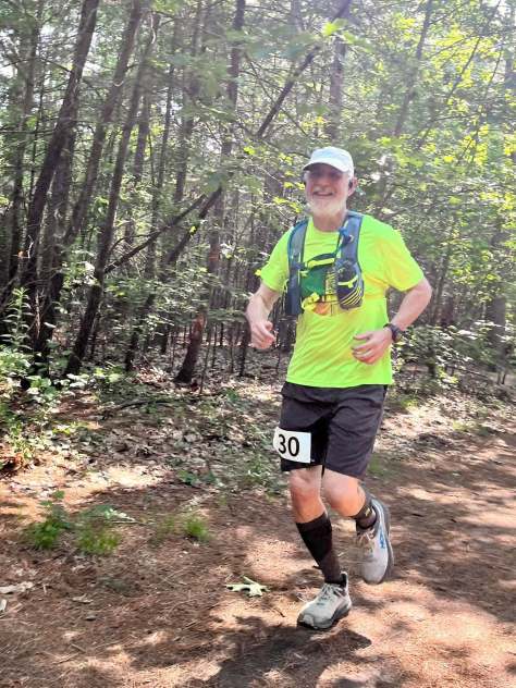 The event was a resounding success in multiple ways. Most importantly, it delivered on its goal of supporting the Humane Society for Greater Nashua by amassing $3,750 in proceeds to support the building project. It also delivered a dandy of a day for the runners. After 13 consecutive Saturdays of rain, the Flat Rock Trail Race was dry. It was a comfortable 63 degrees at the start and warmed to 83 by the time the finish line closed. Runners enjoyed sunny skies for the duration of the event.