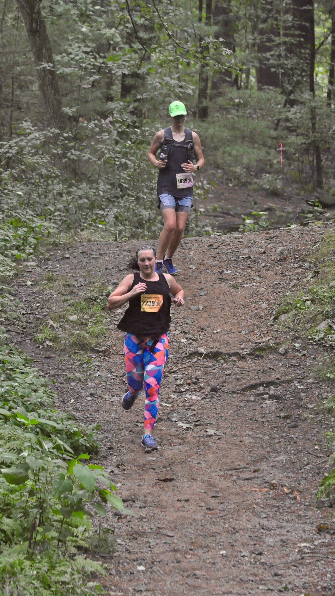 Katie Guerce of Leominster, Mass., dashes down one of the rolling hills in the woods at Great Brook Farm State Park at the 2023 TARC Fall Classic. Guerce finished the 50K race. Photo by Chris Wristen/MassUltra.