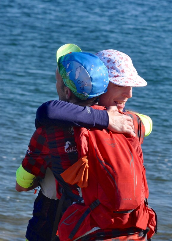 Cole Crosby hugs Matt Dibb at the end of Crosby’s successful FKT attempt on the Bay Circuit Trail. Dibb was the previous record-holder and paced Crosby for the final 25 miles. “That was like a storybook ending,” Crosby said. “To share the last marathon with him was really special; it was really the cherry on the top. It was just the perfect way to conclude this whole experiment.” Photo by Chris Wristen/MassUltra
