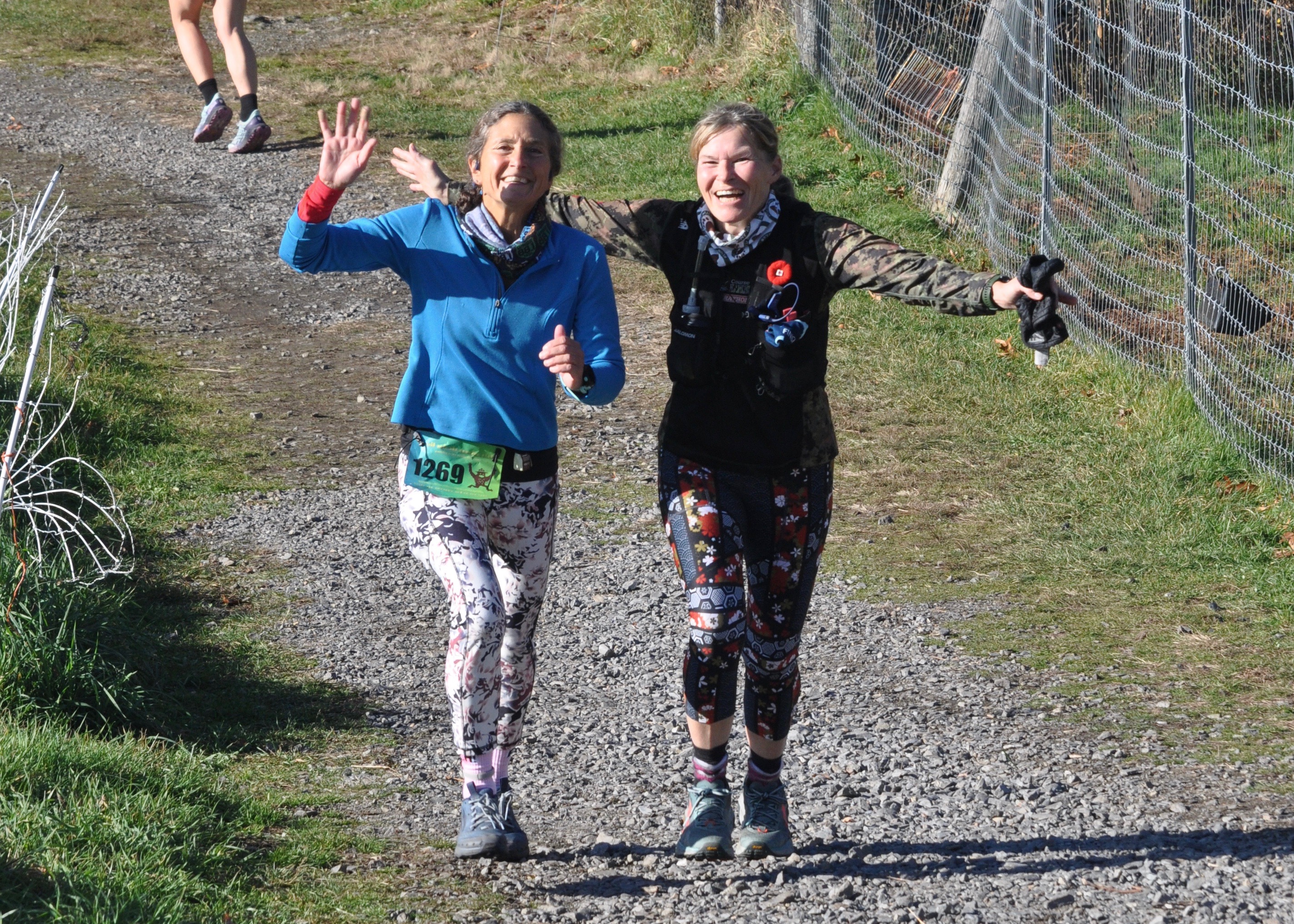DSC_7670 November 12, 2023 2848 × 2034 DSC_7670 Laurie Ellis (left) and Michelle Swanson (right) having fun on the trail at the TARCkey Trot 6-Hour Ultra. Photo by Chris Wristen/MassUltra