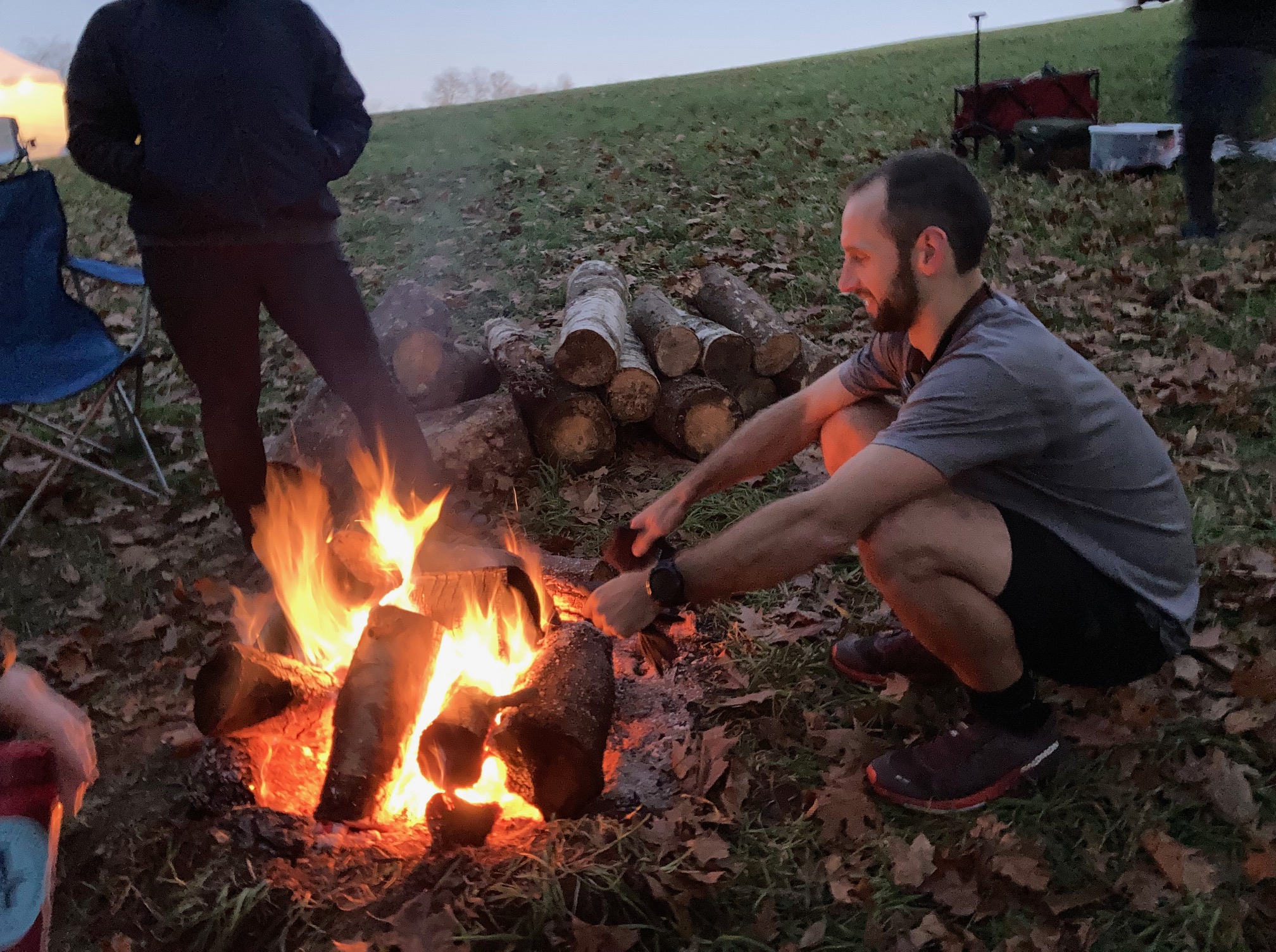 IMG_1529 November 12, 2023 2016 × 1504 IMG_1529 Matthew LePage warms his hands before beginning his 10th loop at the Race for DFL. LePage finished 12 hours and 50 miles before ending his day. Photo by Chris Wristen/MassUltra