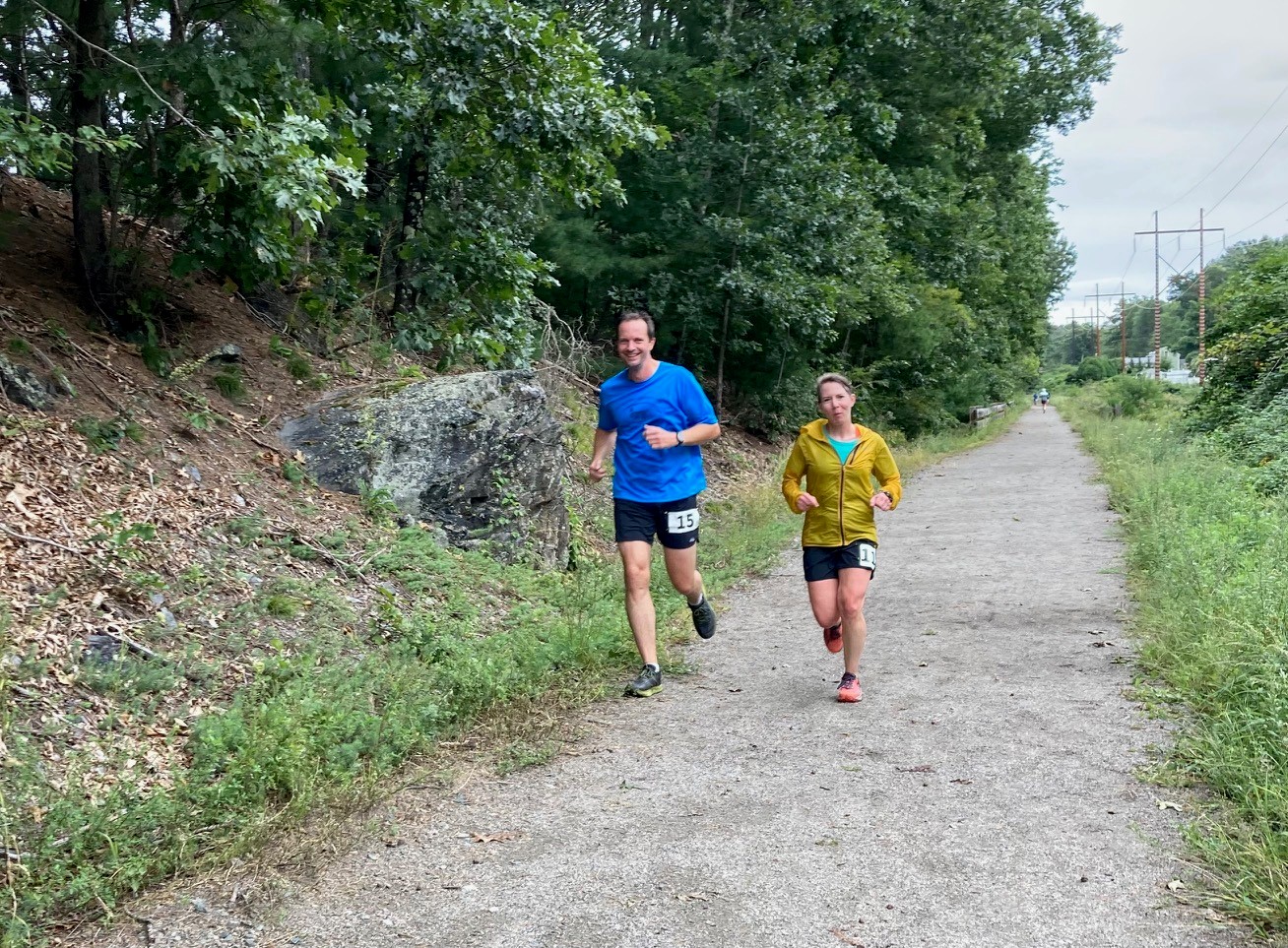 MWBY14 September 19, 2023 1308 × 963 MWBY14 TJ Poole, left, and Alexandra Brinkert, right cruise through their fourth hour of running at the MetroWest Backyard Ultra. Photo by Chris Wristen/MassUltra.